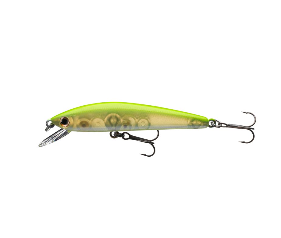 Este pequeño pez artificial es perfecto para percas y truchas, pesa 3,5 g y su profundidad de nado es de entre 0,30 m y 0,80 m.